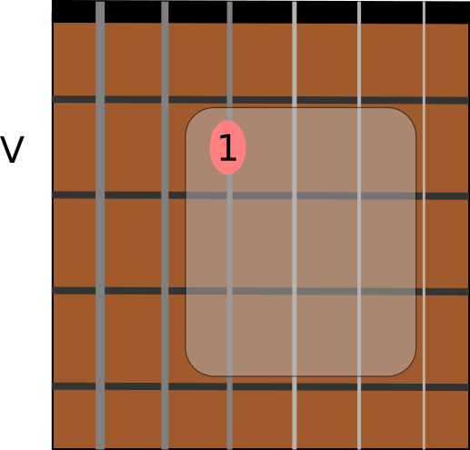 See the area that's enclosed in the rounded rectangle? It's a 3-fret by 3-string square.